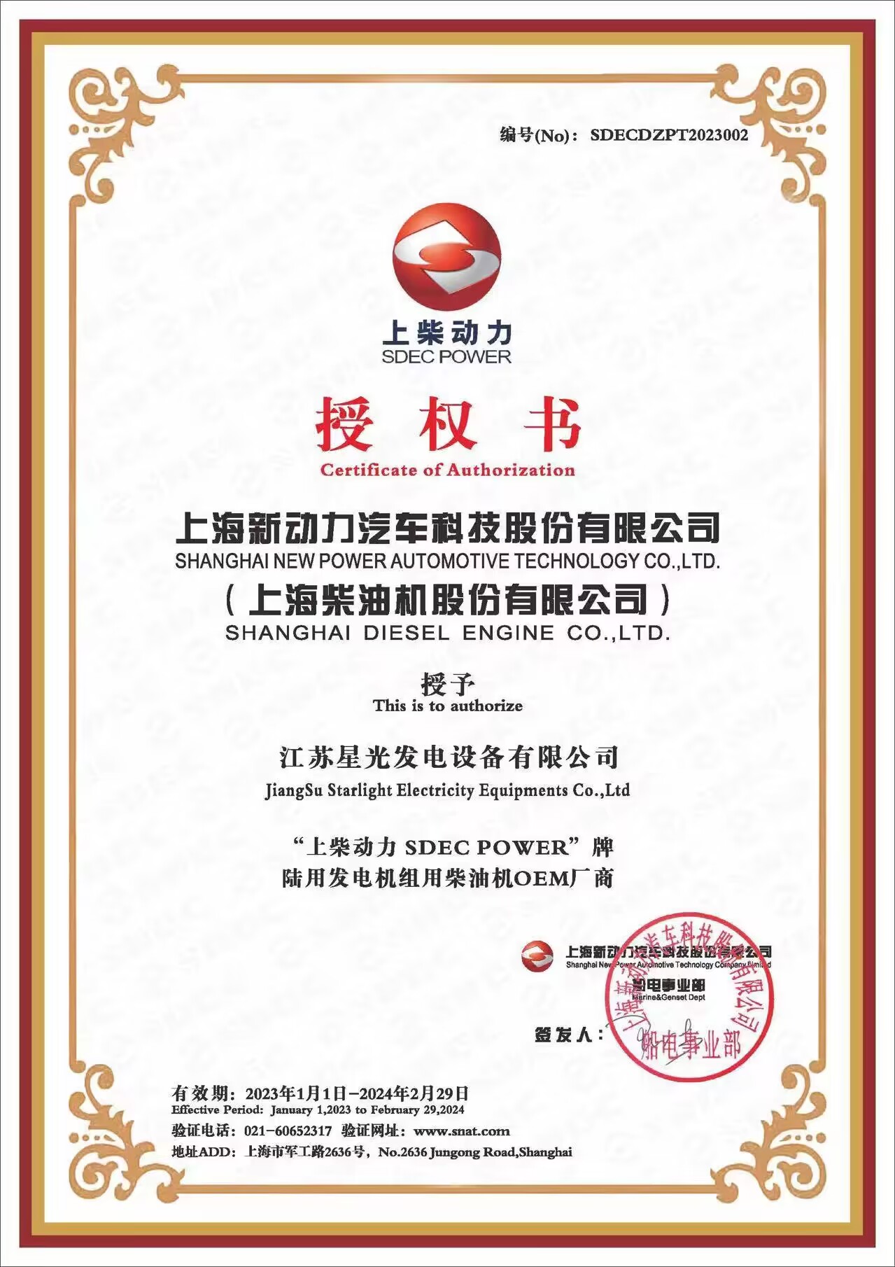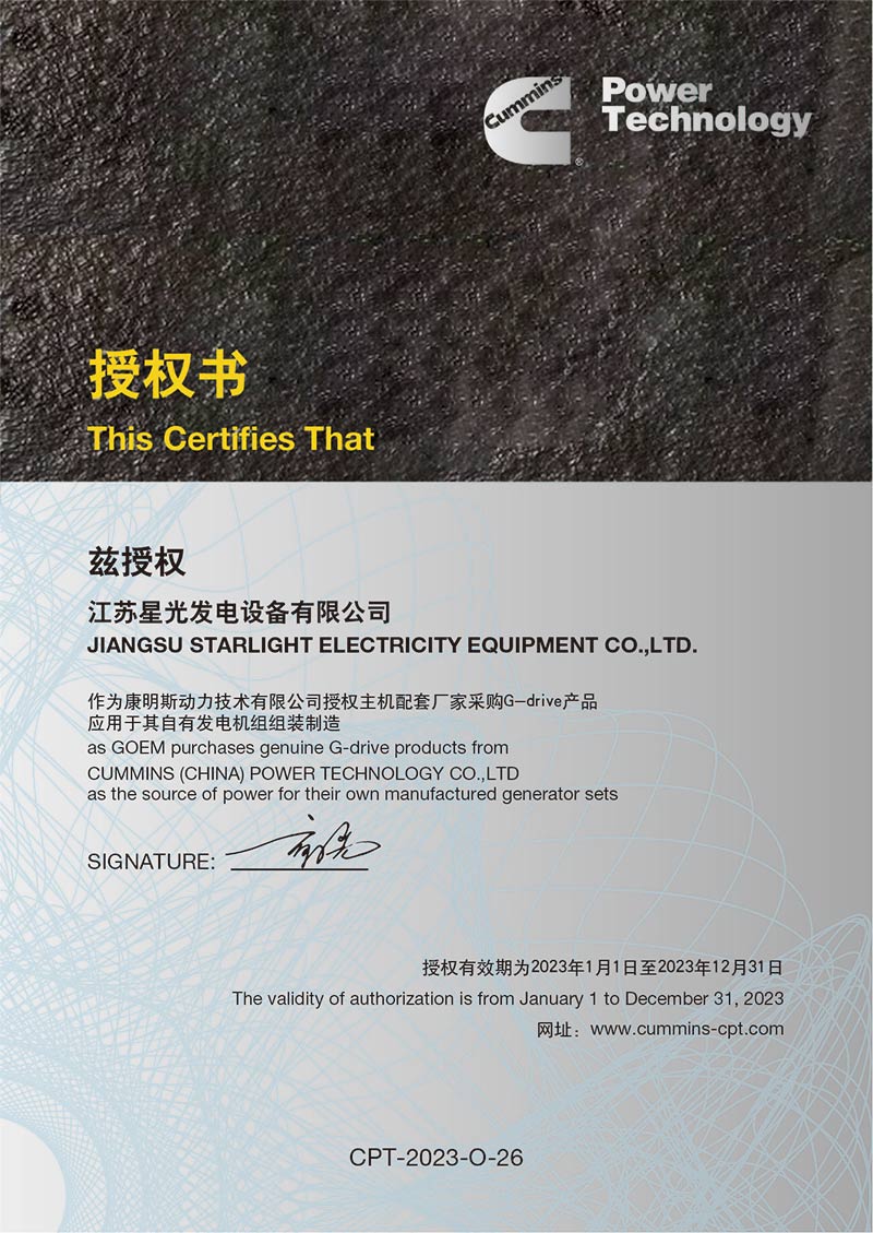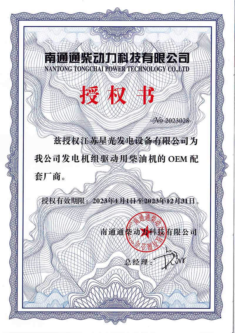2023年通柴OEM授權(quán)書(shū)