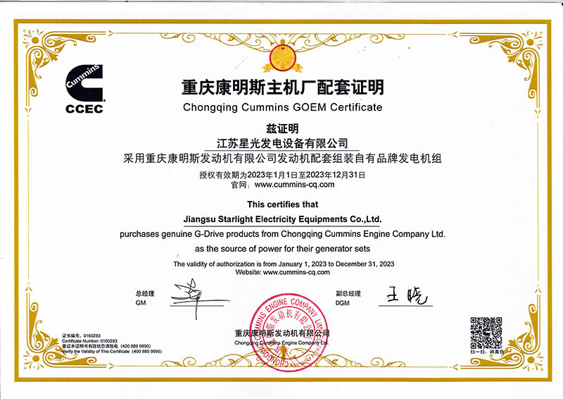 重慶康明斯主機(jī)廠配套證明